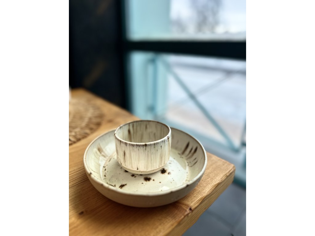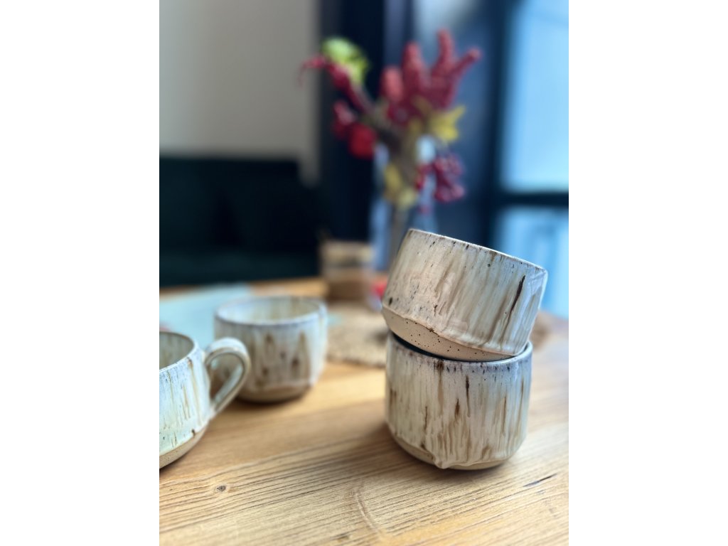 Kalíšek jsem točila na hrnčířském kruhu a pálila v keramické peci na vysokou teplotu ve svém překrásném ateliéru na okraji Žďárských vrchů v srdci Vysočiny.