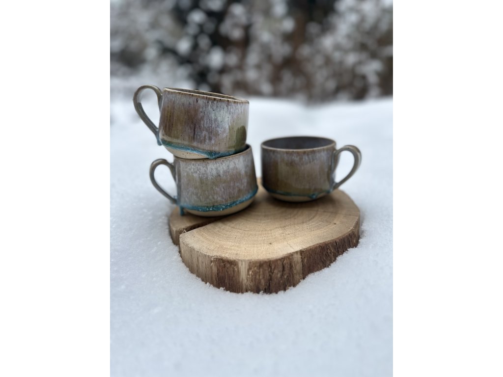 Hrnek jsem točila na hrnčířském kruhu a pálila v keramické peci na vysokou teplotu ve svém překrásném ateliéru na okraji Žďárských vrchů v srdci Vysočiny.